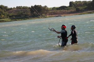 - Una vez en el agua ya sabremos manejar la cometa y aprendermos a desplazarnos mediante la técnica del “body-drag”, a relanzar la cometa del agua y despegar y aterrizar la cometa en tierra a la la vez que iremos incrementando el tamaño del kite: nunca estareis solos, siempre tendréis un instructor cerca para ayudaros y corregir los errores.